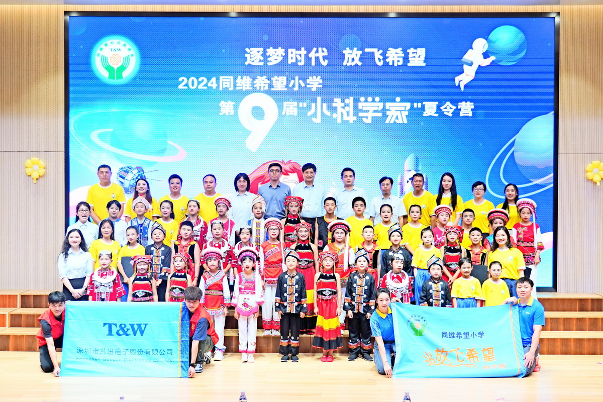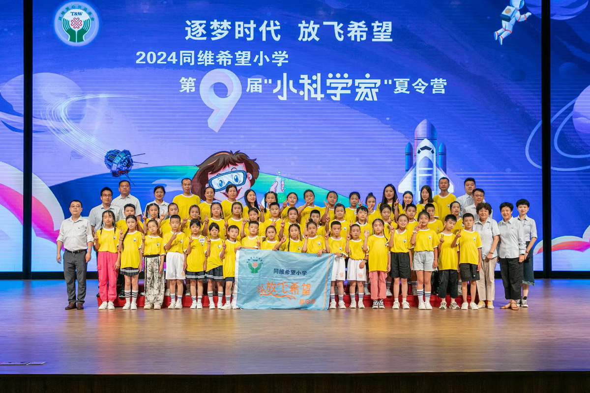 逐梦时代,放飞希望。7月28日,由深圳市同维爱心公益基金会主办的2024同维希望小学第九届“小科学家”夏令营闭营,为五省八所同维希望小学共96名优秀师生的七天精彩科学之旅画上了圆满句号。